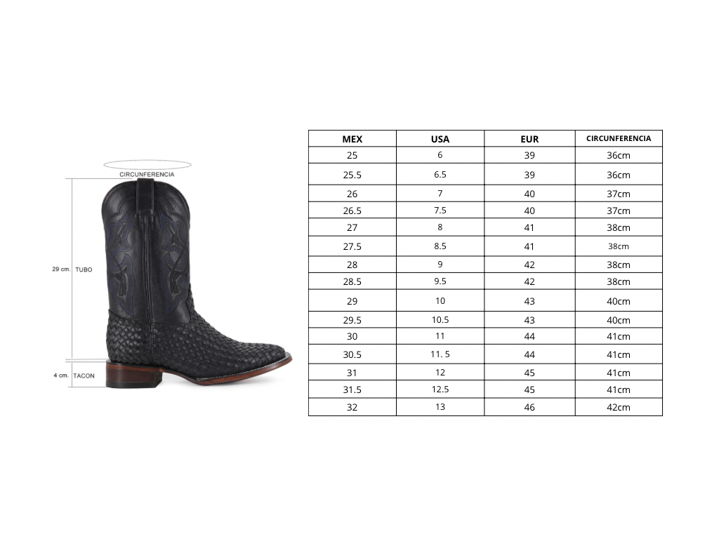 Descubre nuestras exclusivas botas vaqueras de calidad excepcional. Hechas de auténtica piel de res petatillo tejido a mano y con un curtido fino de las mejores tenerias internacionales.