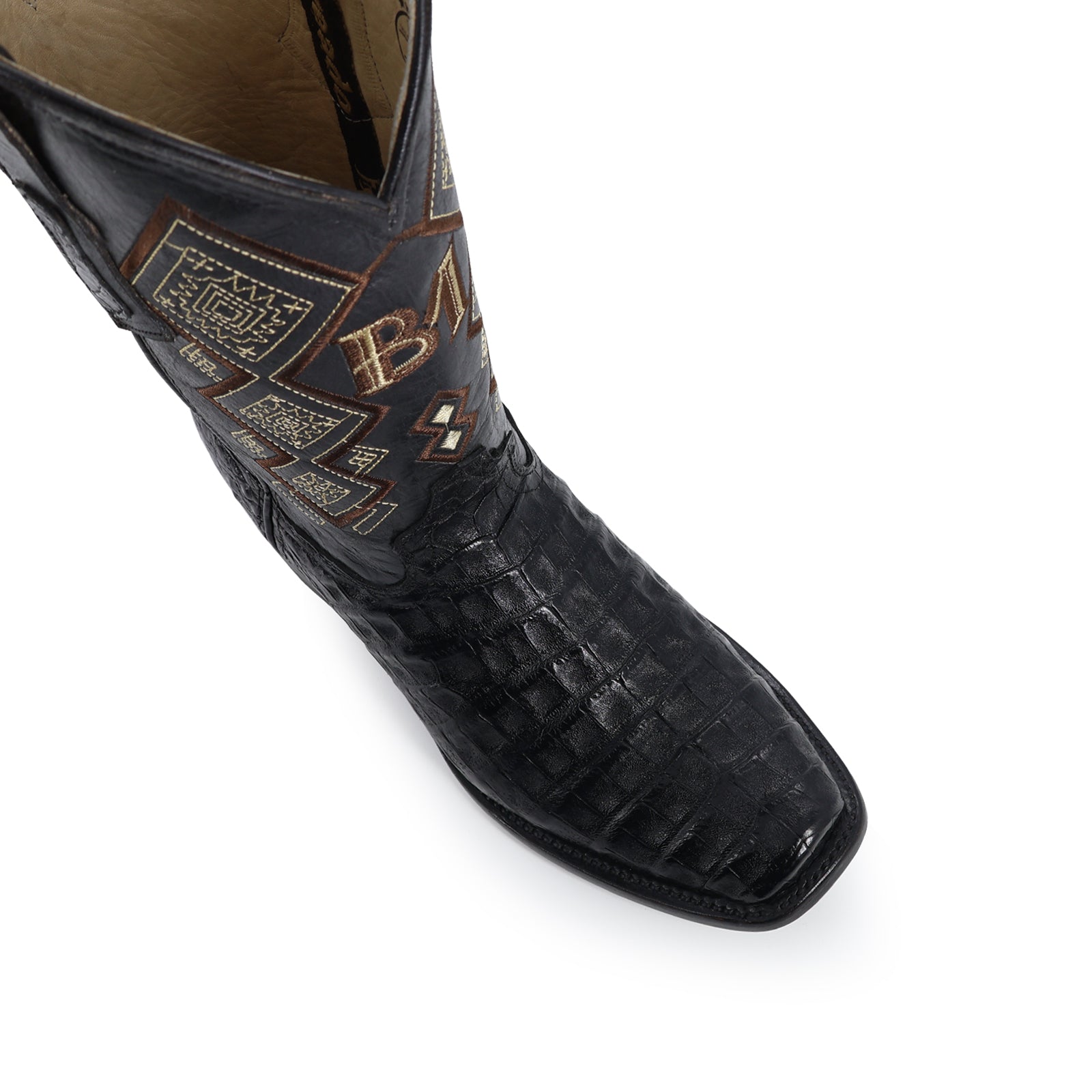 Descubre nuestras exclusivas botas vaqueras de calidad excepcional. Hechas de auténtica piel de caimán de acabado brillante y con un curtido fino de las mejores tenerías internacionales.