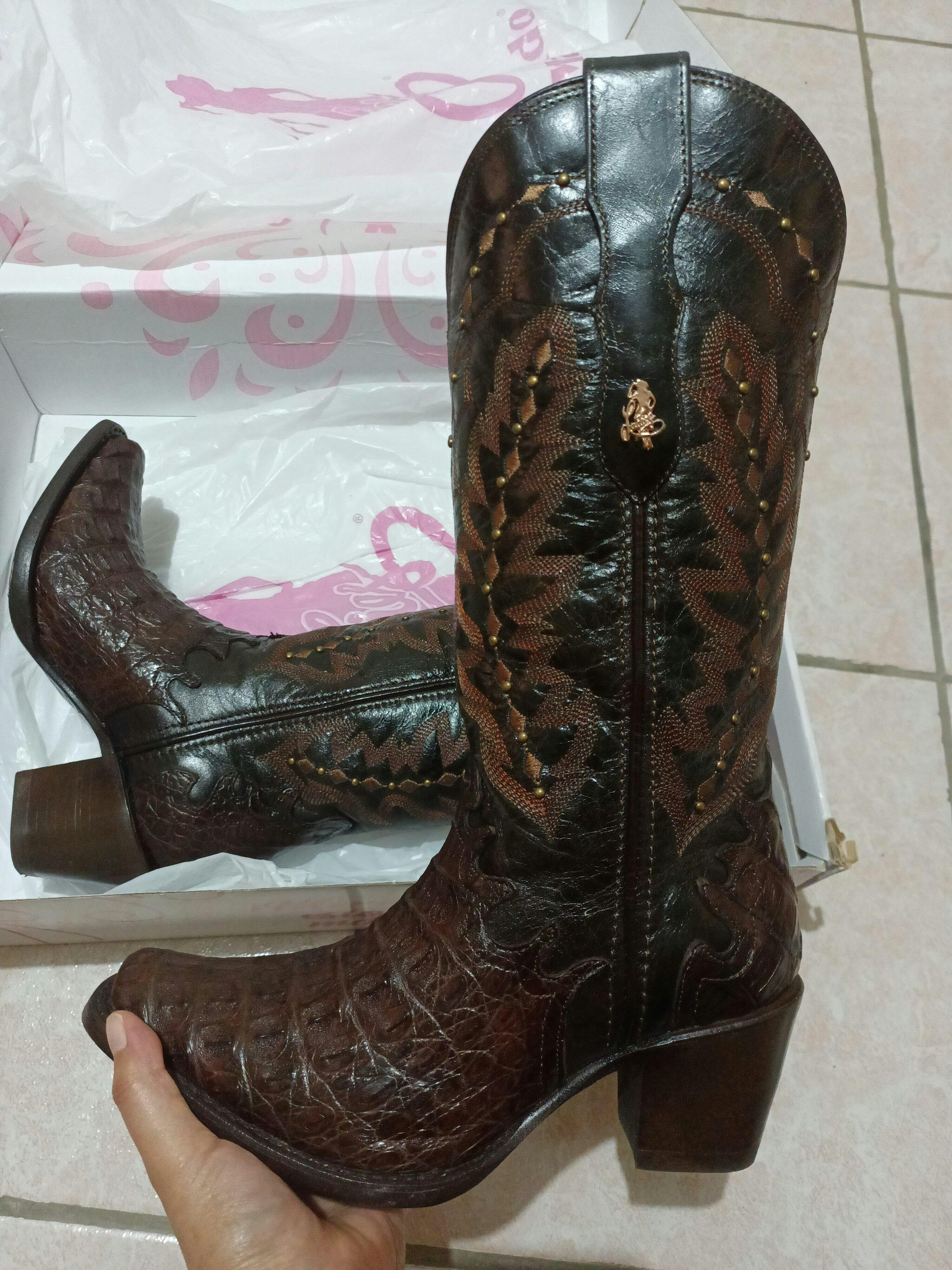 Bota vaquera para dama de piel de caiman modelo Barbie