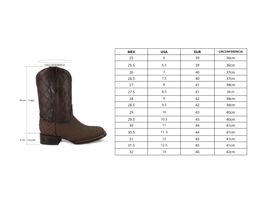 Descubre nuestras exclusivas botas vaqueras de calidad excepcional. Hechas de auténtica piel de res petatillo tejido a mano y con un curtido fino de las mejores tenerias internacionales.